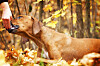 Hunden Mel leker tillsammans med sina osynliga vänner