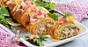 Pannkaksrulle med krämig svamp- och räkstuvning