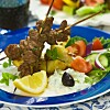 Kycklingspett med grekisk sallad och tzatziki