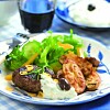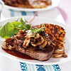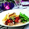 Getostfylld fläskfilé med körsbärssås och sesamstekt potatis