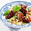 Grillade kycklingspett med ljummen tabbouli
