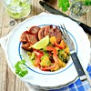 Pepparrotskött med kokta grönsaker