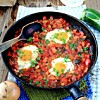 Falukorvs- och grönsakspanna med ägg