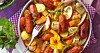 Ugnsgratinerad falukorv med rostade rotfrukter