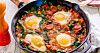 Shakshuka med kryddig korv och spenat
