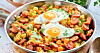 Potatispytt med kryddig korv och stekt ägg