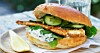 Hemgjord fiskburgare med picklad gurka