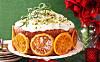 Saffranskaka med florsockerglasyr och honungsglaserade apelsinskivor