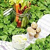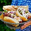 Grillad korv med potatissallad och majssalsa