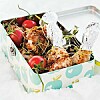Dubbelmacka med rödbetor, getost och lax.