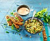 Vårlik bulgursallad med grön sparris och sockerärter