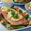 Snabbgravad, ugnsbakad laxfilé med citronhollandaise