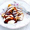 Pannkaksspett med jordgubbar och chokladsås