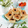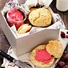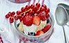 Mandelkakor med hallon och vit choklad och vaniljgrädde