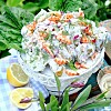 Potatissallad med rökt lax och kräftor