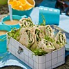 Tunnbrödsrullar med hummus och baconströssel