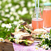 Sockerkaka med flädermarinerad fruktsallad