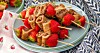 Pannkaksspett med jordgubbar och chokladsås