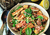 Fattehsallad med kryddig färs och granatäpple