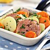 Kokt rimmad oxbringa med pepparrotssås och potatisstomp