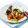 Örtkryddade rotfrukter med chorizo i ugn