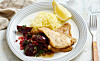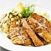 Ugnsbakad spätta med räkfyllning och vitvinssås
