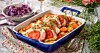 Ugnsgratinerad falukorv med rostade rotfrukter