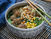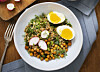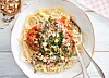 Vegetarisk bolognese på belugalinser med ajvar och mynta
