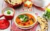 Tomatsoppa med crème fraiche-topp