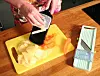 Var försiktig, använd den hållare som håller fast grönsaken medan man för den över det vassa bladet. Annars är det lätt att skära sig i fingertopparna.