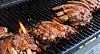 Lägg på gallret medan glöden tar sig, så hinner eventuella bakterier att brännas bort innan du lägger på maten.