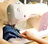 • Symaskinerna har använts till att sy i material som jeans–tyg, trikå, bomull, siden, polyester och tunt gardintyg.
